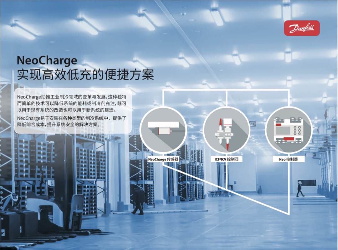 丹佛斯NeoCharge自适应定量供液系统通过高精度电动阀(如ICM电动阀)和动态智能控制算法,可通过对循环倍率控制(CCR)模式,可以大幅削减传统超倍供液制冷系统的制冷剂充注量,降幅高达40%以上,同时还能保证系统能效处于超倍供液系统的优化水平甚至略有提升。该技术也可以用于提升传统干式直膨系统的效率,在确保系统充注处于同一水平的前提下,通过湿直膨(WDX)方式提升系统能效高达15%以上。