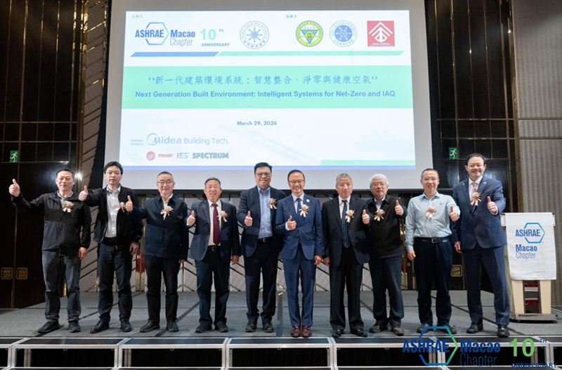 2026年3月29日,由ASHRAE澳门分会主办、江苏省制冷学会协办的“新一代建筑环境系统:智慧整合、净零与健康空气”研讨会在澳门隆重举行。本次会议汇聚了苏澳两地制冷空调领域专家学者100余人,共同探讨建筑领域低碳转型、智慧升级与健康人居的前沿解决方案,为澳门及大湾区绿色建筑技术发展搭建交流平台。
