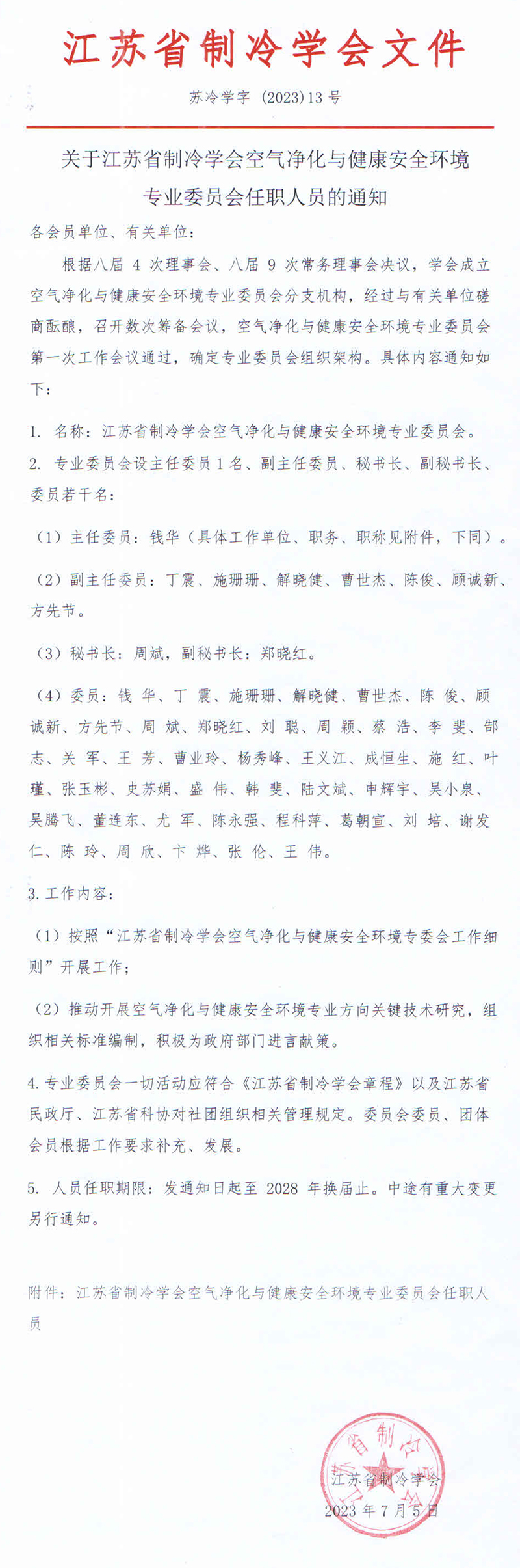 附件下载:江苏省制冷学会空气净化与健康安全环境专业委员会任职人员.docx