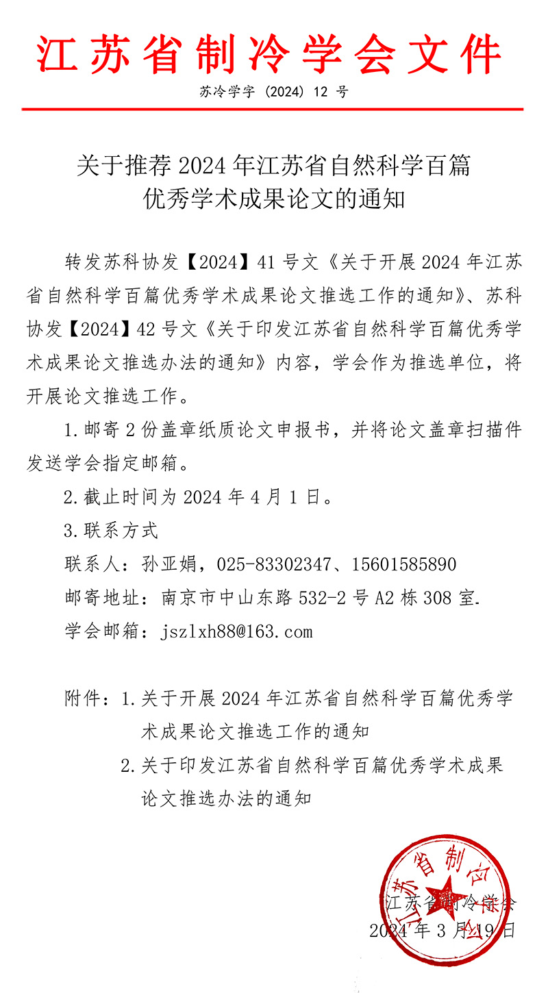 附件下载:附件1.关于开展2024年江苏省自然科学百篇优秀学术成果论文推选工作的通知(苏科协发〔2024〕41号).docx